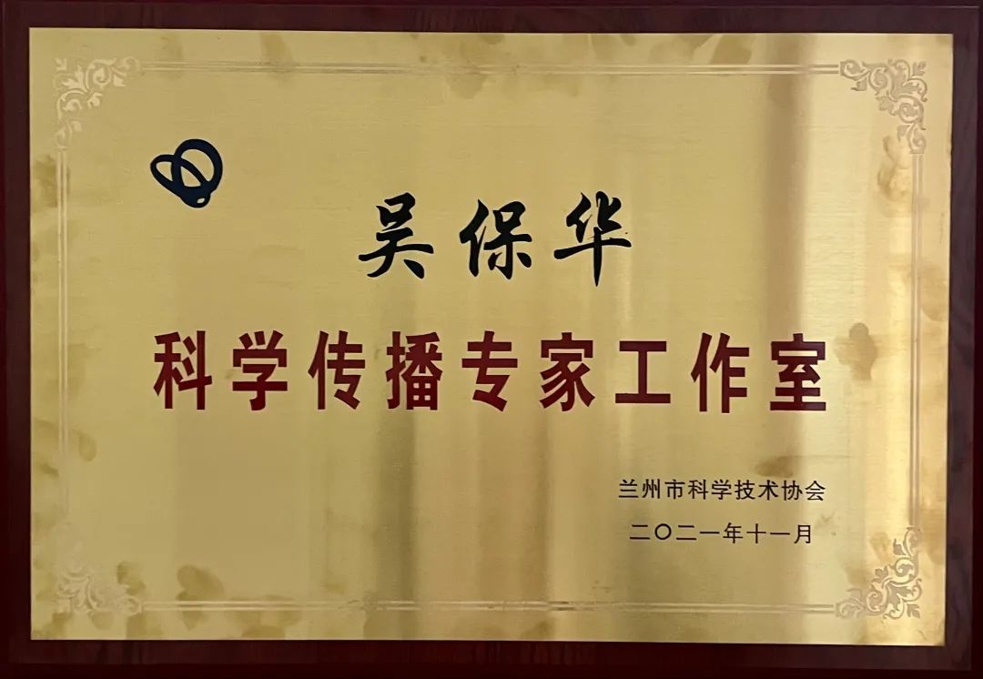 2021年5月27日,在市科協(xié)組織召開“眾心向黨、自立自強”弘揚中國科學家精神座談會上,業(yè)務院長吳保華被授予“蘭州優(yōu)秀科技工作者”榮譽稱號。2022年1月12日,由蘭州市科學技術協(xié)會主辦的首屆“金城負責人科普專家”聘任儀式上,吳保華院長被聘任為 “金城負責人科普專家”,負責組建“吳保華科學傳播專家工作室”。