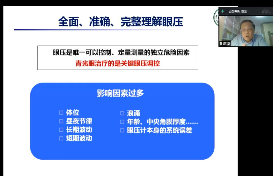 國家973項目負責(zé)人科學(xué)家葛堅教授首先為參會人員帶來《青光眼診治新進展》。在他看來,全球青光眼患者均屬于上升趨勢,而在全球的8000萬青光眼患者中,中國的原發(fā)性青光眼患者占四分之一,這要求全社會共同關(guān)注青光眼疾病的危害,加強認識。葛堅教授講道,青光眼的臨床研究被廣泛重視是近年來青光眼診治工作的重要進展,葛堅教授著重講解了眼壓調(diào)控在青光眼中的關(guān)鍵作用,并結(jié)合先進臨床隨機安慰劑對照研究,闡述了降低眼壓對于減緩視野損害進度的重要性,要求青光眼醫(yī)生多方面、有效、完整地加深對于眼壓的理解和認知,并對高眼壓研究發(fā)表見解。隨后,葛堅教授深入解讀美國、歐洲、英國、亞太等國的青光眼臨床指南,強調(diào)了醫(yī)護人員和患者彼此尊重、互相溝通的重要性。*后,葛堅教授分享了青光眼診斷和方面的新進展,包括人工智能的發(fā)展及運用,對此提出了寶貴的見解和建議。